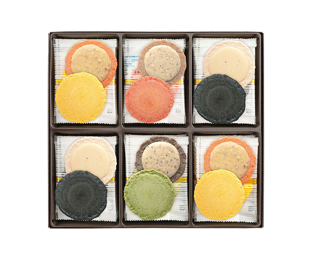 - えびチーズサンド(ラー油&松の実&中国山椒・しょう油&山葵&椎茸×各7、コンソメ&トリュフ・バルサミコ&マンゴー&ピスタチオ×各14)