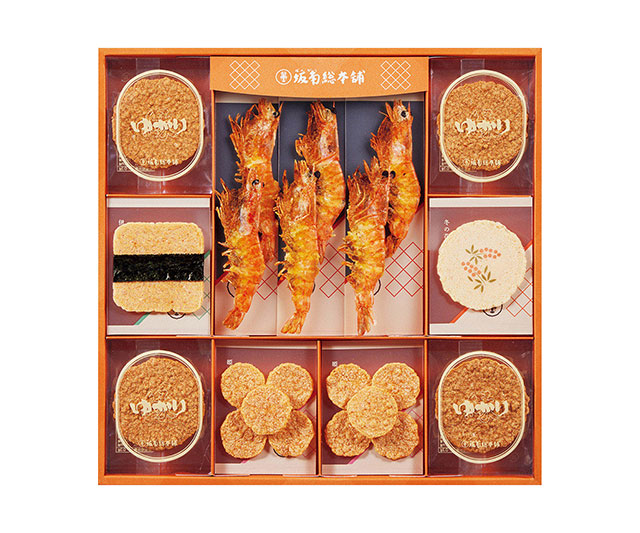 ゆかり×16、姫ゆかり×4袋、姿焼き(国産車海老)×6、ふくみ焼き(伊勢湾黒のり)・はさみ焼き(冬の花)×各4