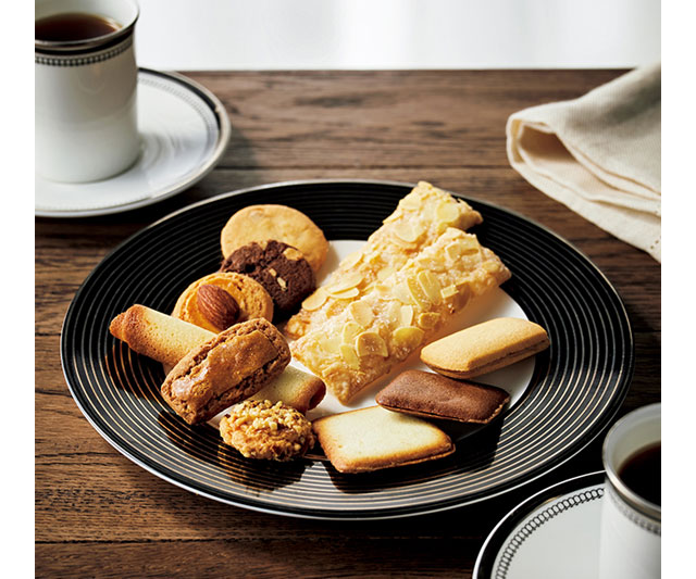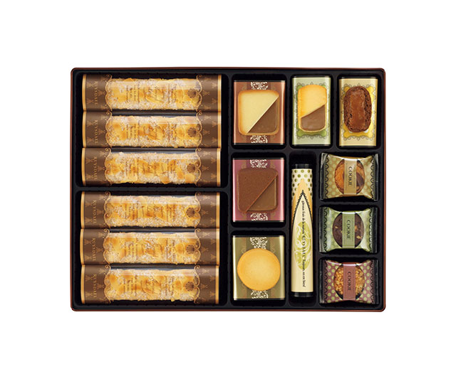 ロイスダールの代表作「アマンドリーフ」をはじめ、バター香るラングドシャにミルクチョコレートをサンドした「ショコラミルク」、シナモンやジンジャーを生地に練り込んだ「シナモン」など人気焼菓子をバラエティー豊かに詰め合わせました。世代を問わず喜ばれる上品な味わいは、大切な方への贈り物にもぴったりです。〈ロイスダール〉伝統の味わいをご賞味ください。