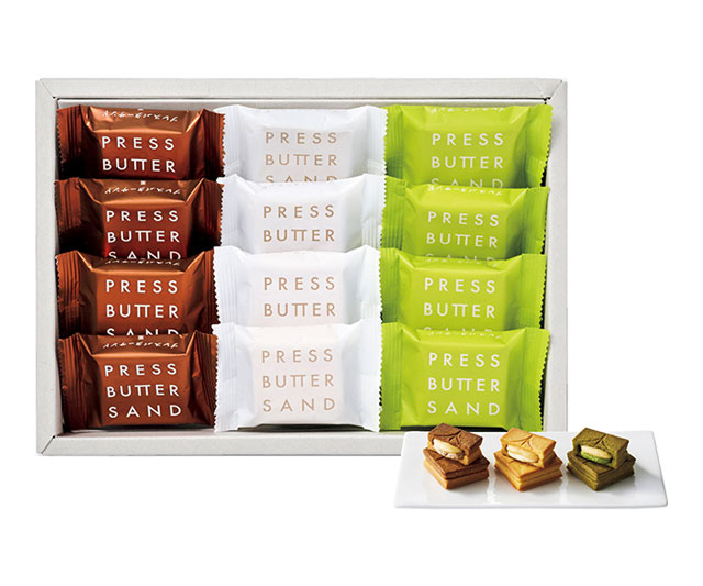 マロングラッセを加えた濃厚な風味の「栗」と、宇治抹茶のすっきりとした苦みと香りが引き立つ「宇治抹茶」、バタークリームとバターキャラメルの2層をはさんだ代表商品のバターサンドを詰め合わせた人気のギフトです。