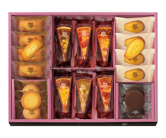 - タルト フリュイ4種計6、フィナンシェ・マドレーヌ×各4、ラング ド シャ(プレーン×3、チョコレート×2)