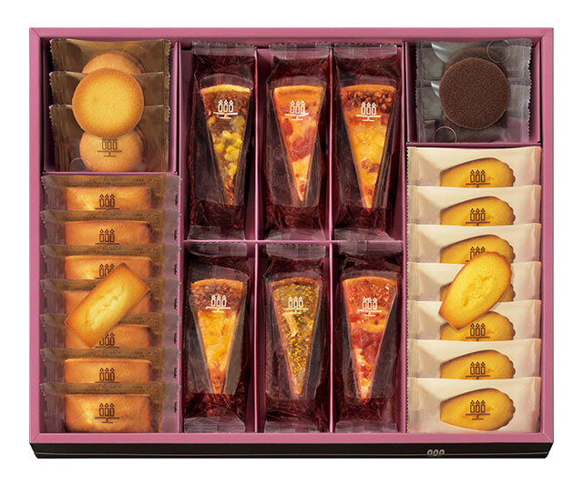 - タルト フリュイ4種計6、フィナンシェ・マドレーヌ×各7、ラング ド シャ(プレーン×3、チョコレート×2)
