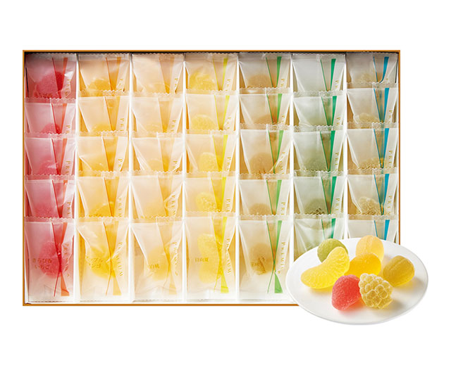 - プレミアムゼリー(きらぴ香いちご・アップルマンゴ・清水白桃・日向夏・王林・クラウンメロン・シャインマスカット×各5)計35