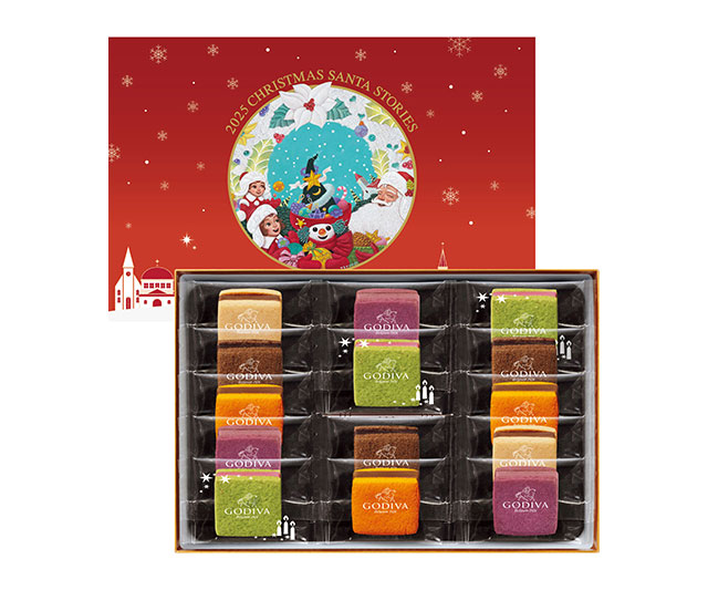 - サブレショコラ(72%ダークチョコレート・カシス&ホワイトチョコレート・ピスタチオ&ラズベリー・ミルクチョコレートキャラメル×各3、トルビヨンプラリネ×2)/紙箱入