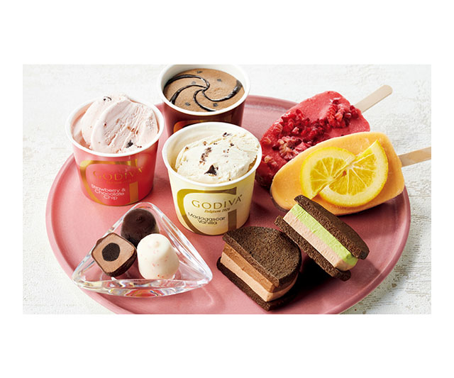 - カップアイス(マダガスカルバニラ・ストロベリー&チョコレートチップ・ミルクチョコレート&チョコレートチップ各120ml)、バーアイス(オレンジ&チョコレート、フランボワーズ&チョコレート)、サンドアイス(チョコレート、ピスタチオチョコレート)、ショコラフォンデュ(ミルクチョコレート・ストロベリー&ホワイトチョコレート各5粒入)
