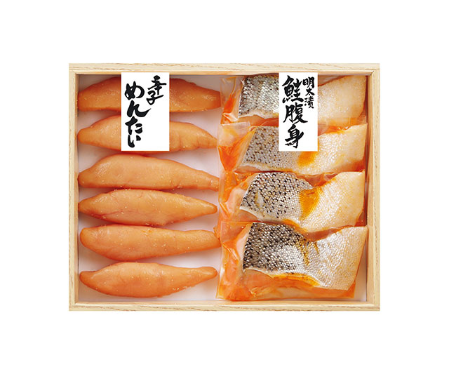 【お歳暮】無着色辛子明太子・鮭腹身明太漬詰合せ *