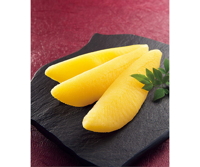 百貨店バイヤーが選び抜いた素材を使用し、自信をもっておすすめする塩数の子です。色・形・歯ごたえを考え、厳しい品質管理のもとでつくりあげました。縁起物として、お祝いの膳を華やかに彩る一品です。