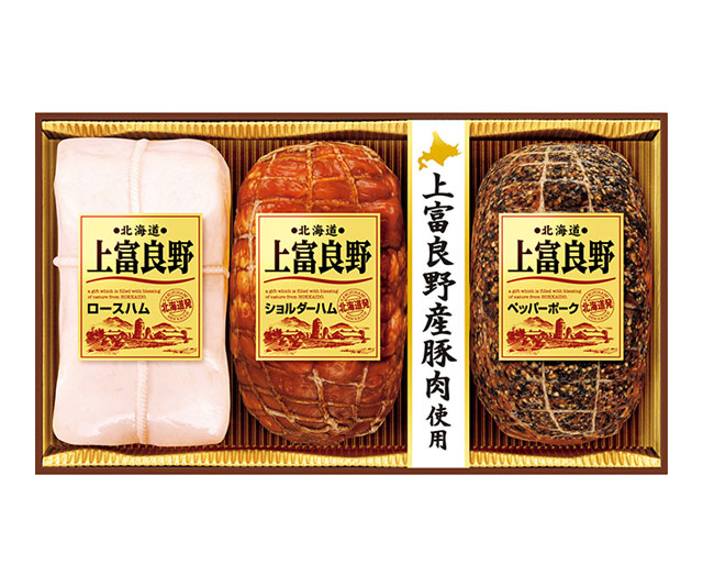 北海道・上富良野産の良質な豚肉を使用し、豊かな旨みときめ細かな肉質を活かしたロースハムなどを詰め合わせました。