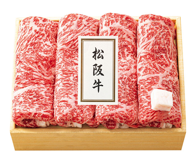 日本三大銘柄牛の一つ、「松阪牛」の上部位ロース肉をスライスしました。見事なサシが入った濃厚な肉の旨みをご堪能いただけます。