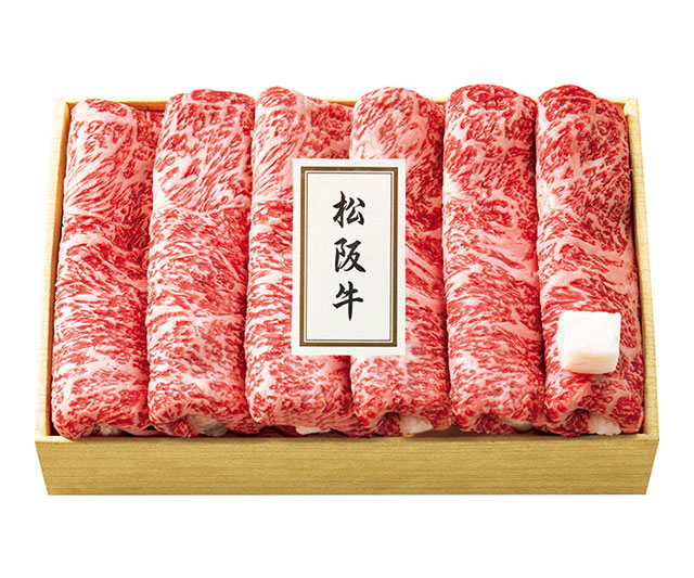 日本三大銘柄牛の一つ、「松阪牛」の上部位ロース肉をスライスしました。見事なサシが入った濃厚な肉の旨みをご堪能いただけます。