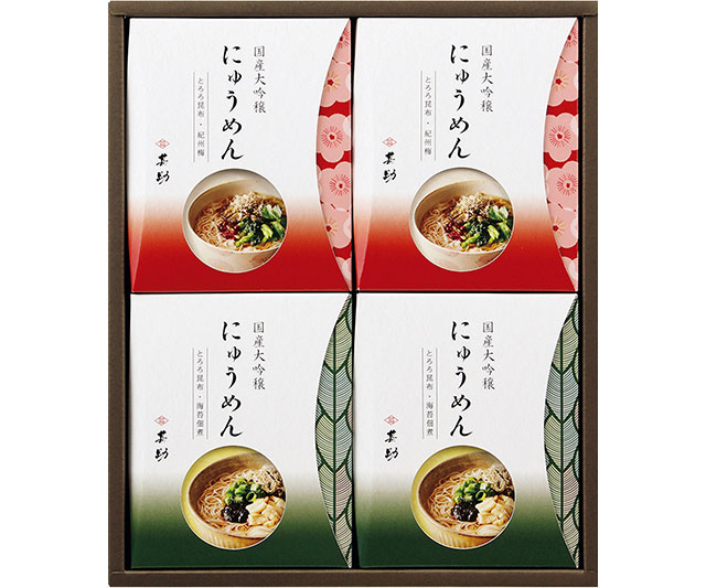 国産小麦の中心部でつくった素麺を、とろろ昆布などの具材とともに味わえるにゅうめんの詰合せです。2分ゆでるだけで風味豊かな美味しさをお楽しみいただけます。