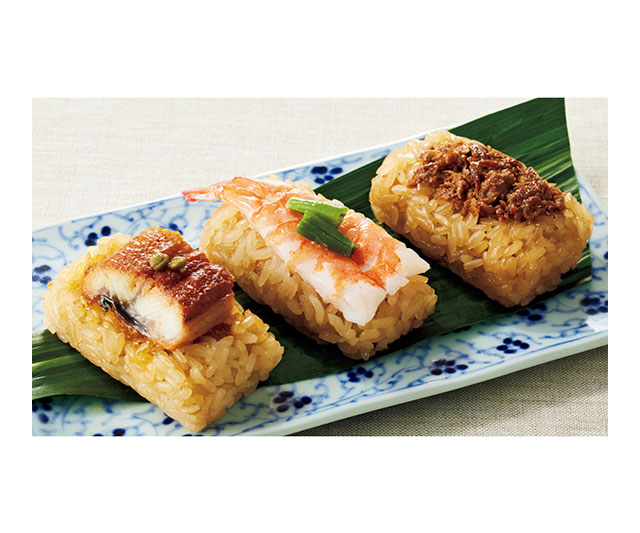 - 鰻飯蒸し・牛肉飯蒸し・海老飯蒸し・牡蠣飯蒸し各50g×各3