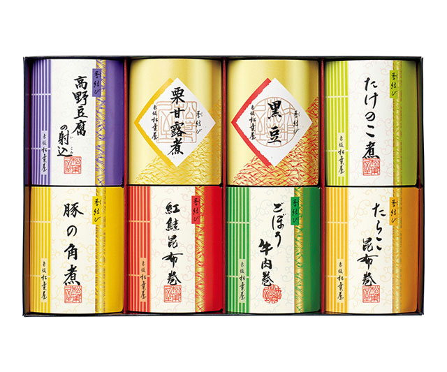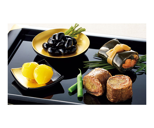山海の幸を昆布や牛肉で一本一本手巻きした巻物をはじめ、黒豆や栗の甘露煮などを詰合せに。迎春の食卓を彩る上品な味付けに仕上げました。