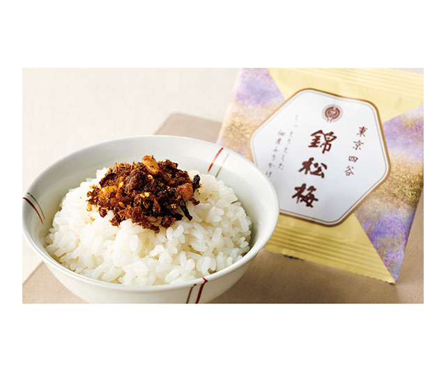 鰹節、白胡麻、きくらげ、松の実などを醤油と砂糖で調味した佃煮風ふりかけを、使いきりサイズでご用意しました。ご飯のお供のほか、麺に和えるのもおすすめです。