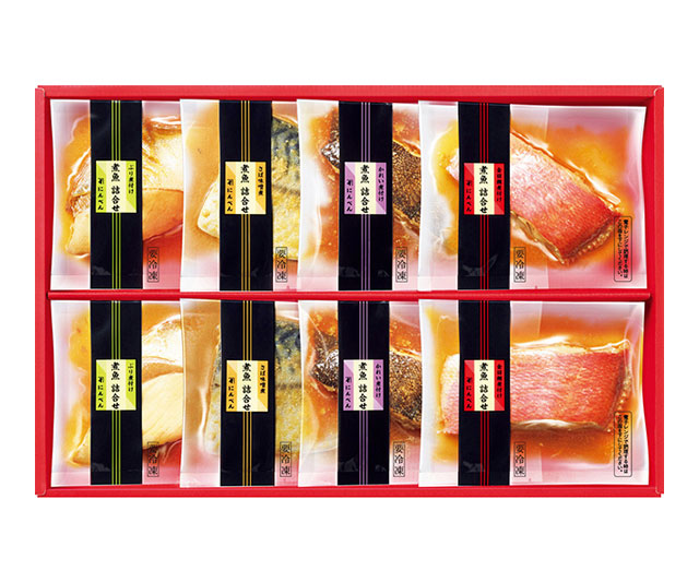 〈にんべん〉の本枯鰹節だしで丁寧に仕上げた煮魚の詰合せ。電子レンジや湯せんで温めるだけで、風味豊かな煮魚がお召しあがりいただけます。