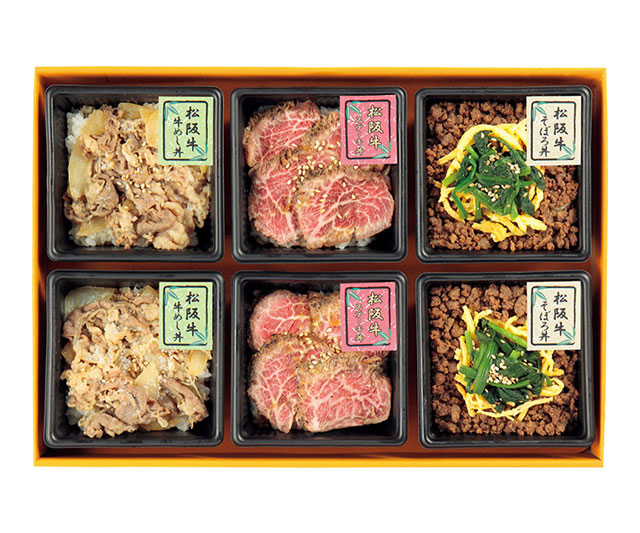 松阪牛を使用した、お茶碗一杯分の少量丼ぶり。肉の美味しさを存分にお楽しみいただける3種の味わいをご用意しました。電子レンジで温めてお召しあがりいただけます。