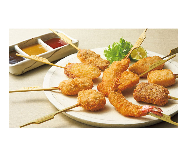 国産素材の旨みが凝縮した10種の串揚げを3種のタレと一緒にご用意しました。〈神戸串乃家〉よりお届けするこだわりの味わいをご堪能ください。