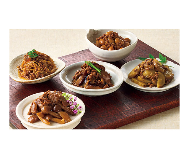 牛肉大豆煮40g×1、牛肉しめじ煮40g・牛肉ごぼう煮35g・牛肉えのき煮45g・牛肉しいたけ煮35g×各2
