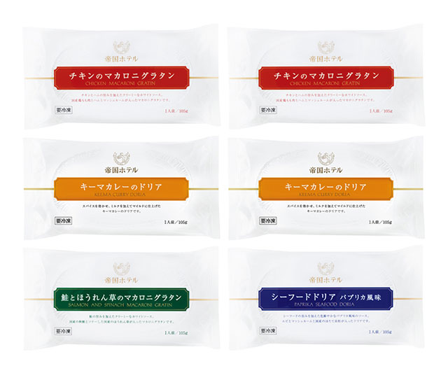 - チキンのマカロニグラタン・キーマカレードリア×各2、鮭とほうれん草のマカロニグラタン・シーフードドリア パプリカ風味×各1、各105g