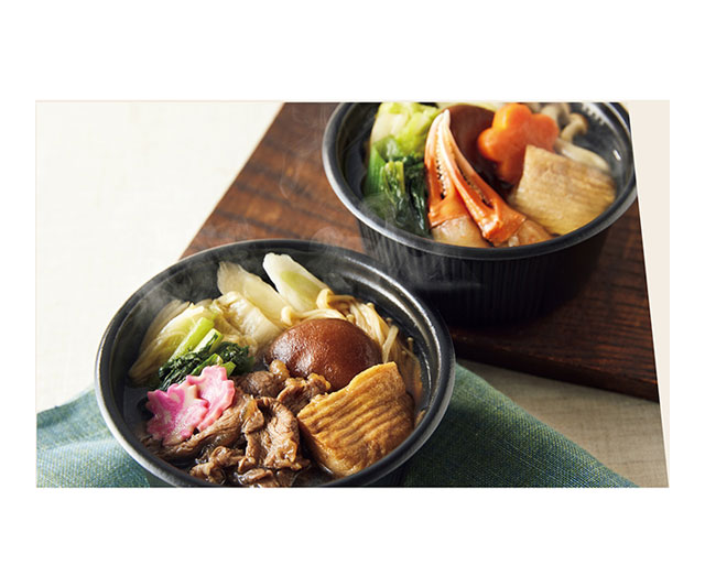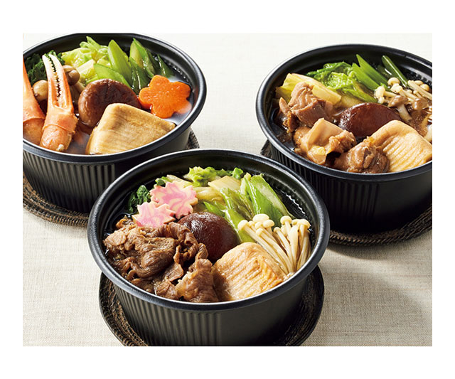 松阪牛、東京しゃも、かにを使ったすき焼きを1人前の食べきりサイズでお届け。素材の旨みを活かしたコク深い味わいを、電子レンジで温めるだけでお楽しみいただけます。