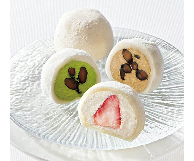 北海道産の濃厚クリームと素材の美味しさを、もちもちの求肥で包みました。あまおうや黒豆抹茶など、贅沢な味わいの3種の和スイーツです。
