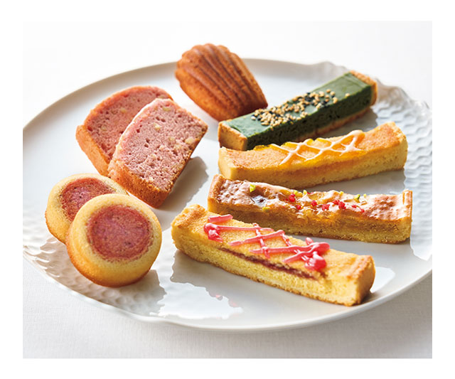 とちおとめを生地に練り込んだマドレーヌや、とちあいかを使用した餡入りのフィナンシェ、あまおう香るパウンドケーキなど、いちごの優しい甘みや香りを楽しめる焼菓子をご用意しました。ほかにも、りんごや抹茶のタルトなど、国産の素材を使ったスイーツを詰め合わせた、味わい豊かなアソートセットです。