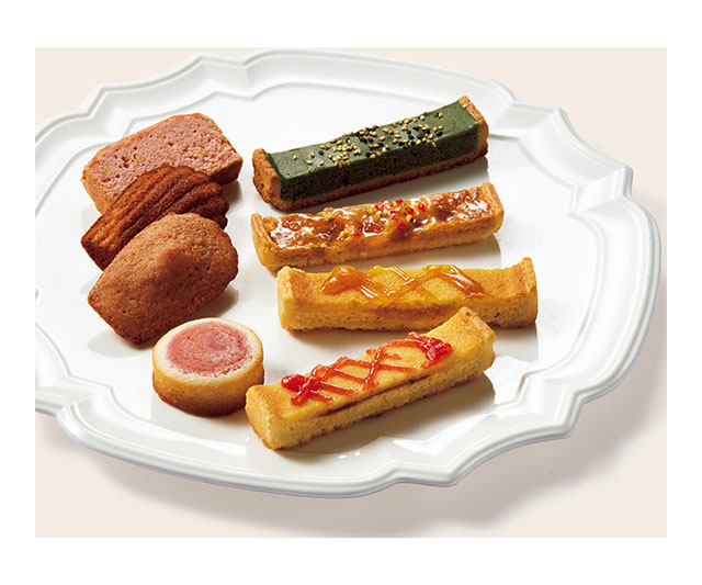 - 国産りんごのタルト×2、チーズと苺のタルト・国産抹茶のタルト・チーズとレモンのタルト×各1、とちおとめ苺のマドレーヌ×4、あまおうのパウンドケーキ・とちあいか餡のフィナンシェ×各3