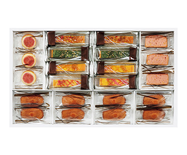 国産りんごのタルト・国産抹茶のタルト・チーズとレモンのタルト・チーズと苺のタルト×各2、とちおとめ苺のマドレーヌ×8、あまおうのパウンドケーキ・とちあいか餡のフィナンシェ×各3