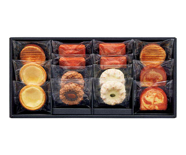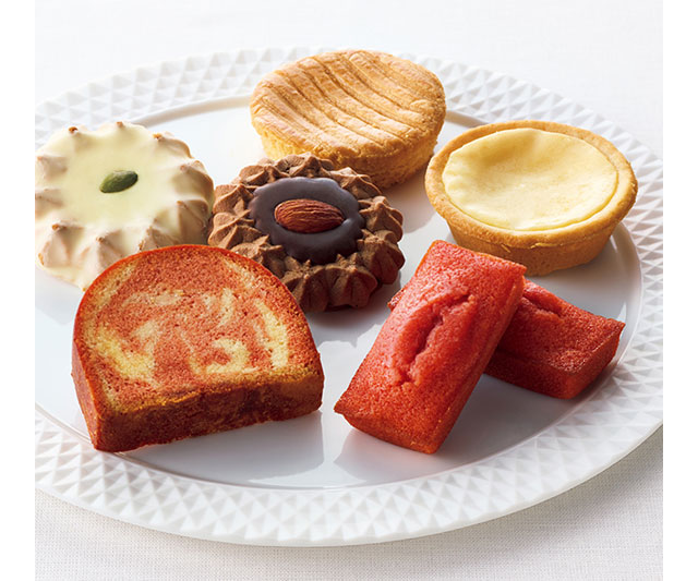 - チーズタルト・ガレットブルトンヌ・いちごのマーブルケーキ・チョコクッキー・ホワイトクッキー×各2、いちごのフィナンシェ×4