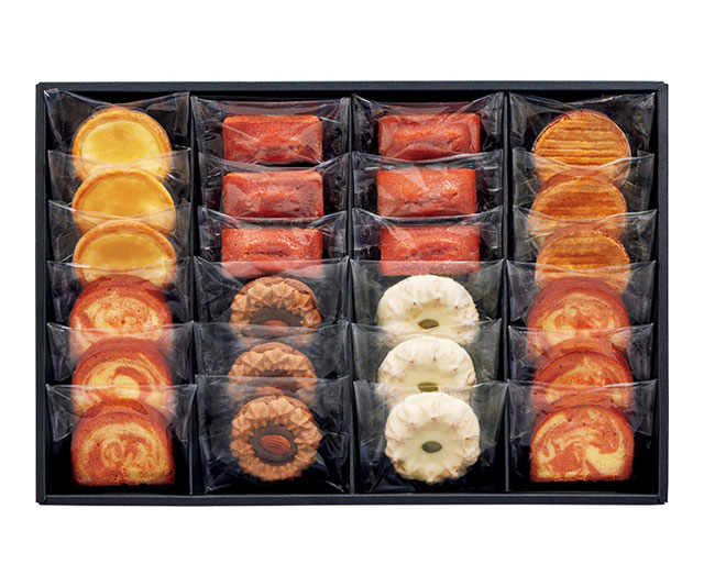 チーズタルト・ガレットブルトンヌ・チョコクッキー・ホワイトクッキー×各3、いちごのフィナンシェ・いちごのマーブルケーキ×各6