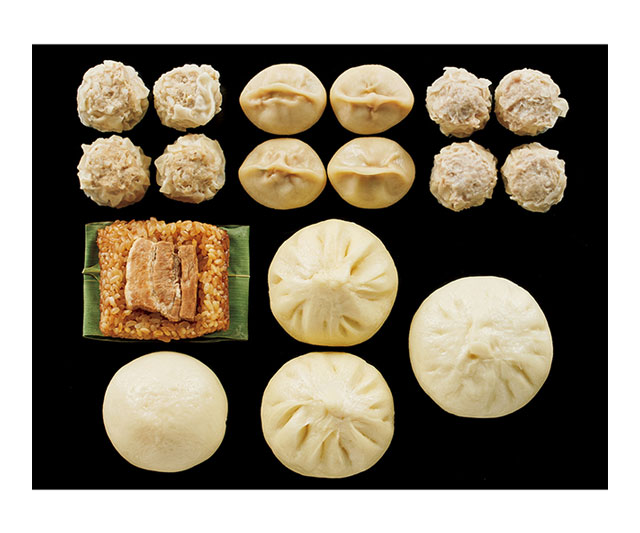- 手包み肉まん90g×2、手包み角煮まん・角煮入り笹粽各90g×各1、黒豚餃子・黒豚焼売・糯米焼売各30g×各4、カスタードまん60g×1