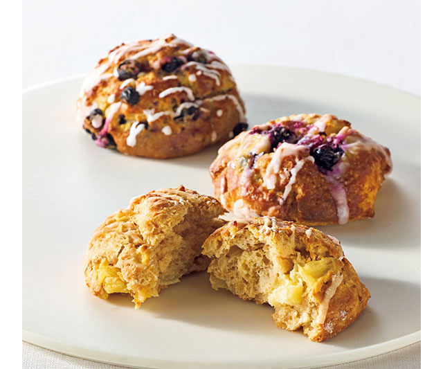 りんごのシャキシャキ食感とシナモンの香りが絶妙な「アップルシナモンスコーン」など、青森県産の果実を使った3種のアメリカンスコーンのセットです。
