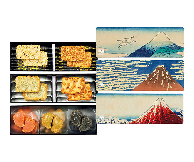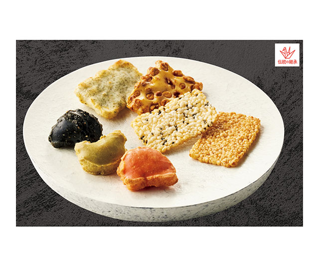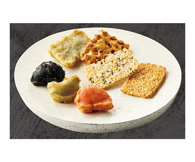 - 慶長(胡麻・醤油×各7)、かきもち(青海苔・豆柿×各4)、古乃端(海老・煎茶・竹炭胡麻×各7)/缶入