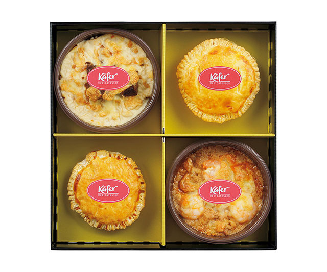 - ミートパイ・ポルチーニパイ各1個、えびのアメリケーヌドリア・デミグラスミートドリア各150g