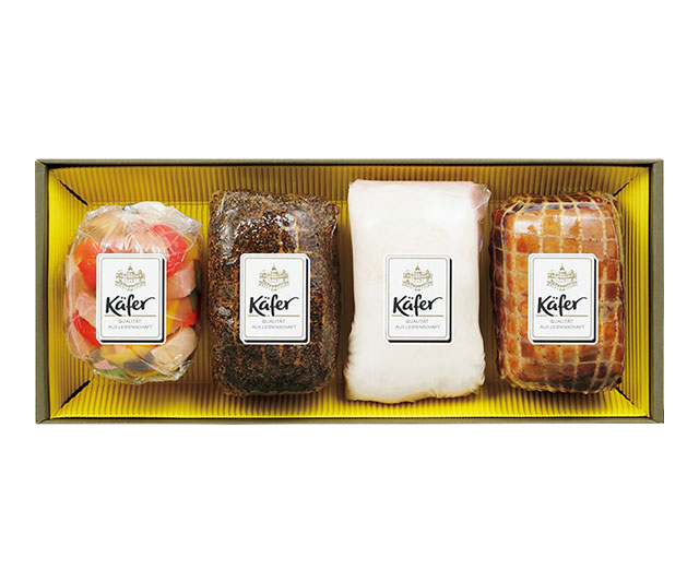 - ホワイトロースハム330g、ペパーシンケン・スモークボンレス各250g、ハムと彩野菜のアスピーク300g