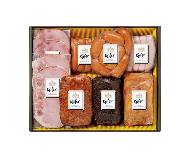 カスラー330g、ペパーシンケン250g、ミートローフ180g、レーゲンスヴルガー170g、カスラースライス・ボンレススライス各60g、ヴィエナーヴルストヒェン・ブラートヴルスト各80g