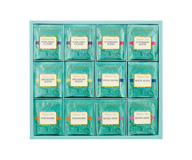 - ロイヤルブレンド・クイーンアン×各6/英国製(茶葉:インド・スリランカ(セイロン))、アールグレイクラシック×6/英国製(茶葉:中国)、ブレックファスト×6/英国製(茶葉:インド)、フォートメイソン×6/英国製(茶葉:インド・中国)、アフタヌーンブレンド×6/英国製(茶葉:スリランカ(セイロン))