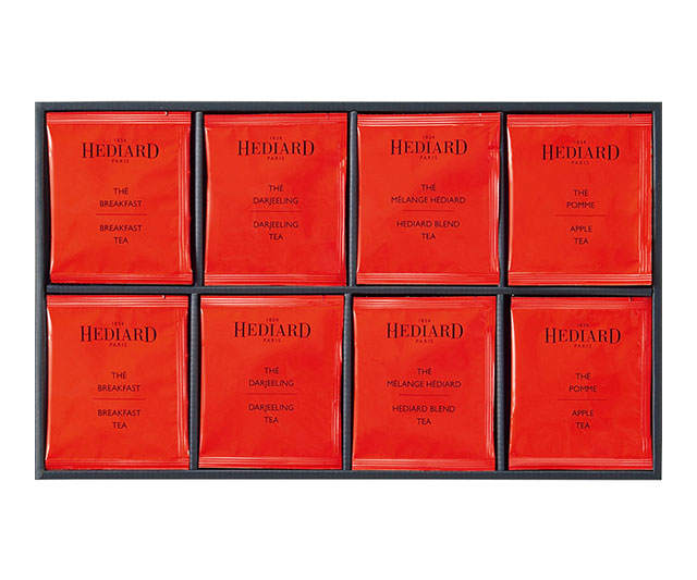 ブレックファスト×14/フランス製(茶葉:スリランカ・インド)、ダージリン×14/インド製、エディアールブレンド×14/フランス製(茶葉:中国)、アップル×14/フランス製(茶葉:スリランカ)