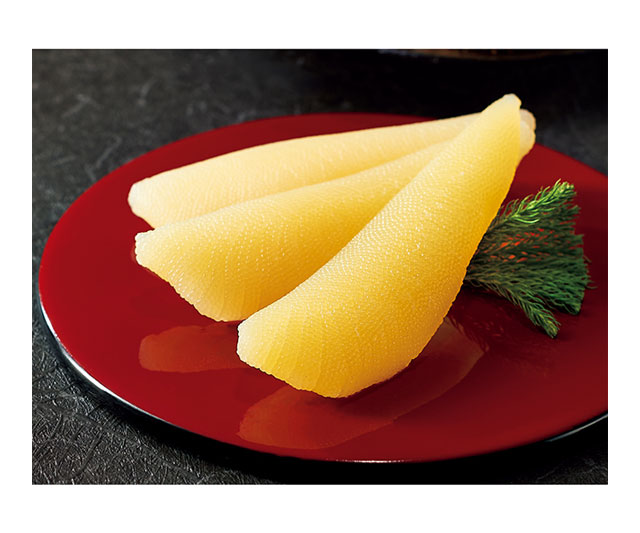 最良といわれるカナダ・バンクーバー沖で水揚げされた鰊の卵だけを使用しました。現地で素早く塩蔵し、北海道の加工場で丁寧に仕上げた数の子は、黄金色で一粒一粒の結びつきが強く、はじけるような歯ごたえです。カナディアン・パシフィック・カズノコ協会(CPKA)の認定を受けています。