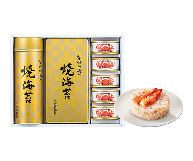 【お歳暮 三越伊勢丹限定】三越 国産紅ずわいがに缶詰・三越伊勢丹 有明初摘み 御海苔詰合せ *