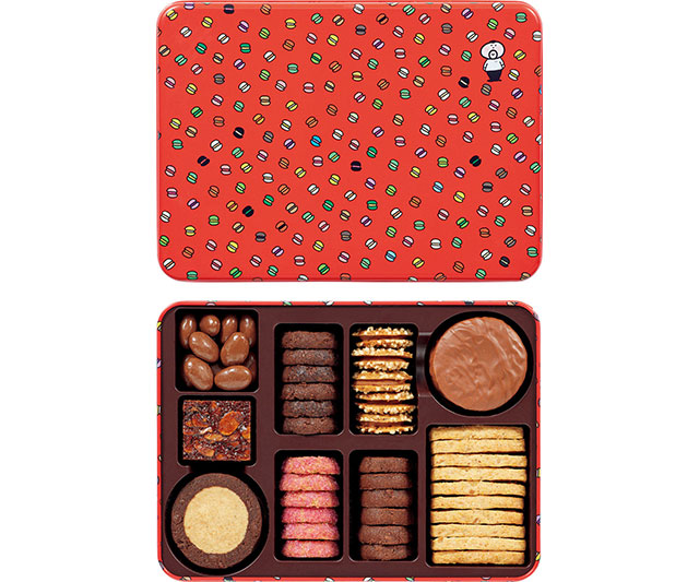 芸術品ともいわれる独創的なスイーツを展開する〈ピエール・エルメ・パリ〉。ヘーゼルナッツとミルクチョコレートが織りなす「サブレ ノワゼット オ ショコラ オ レ」や、香ばしさが際立つ「フロランタン ショコラ」などを詰め合わせました。
