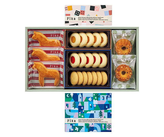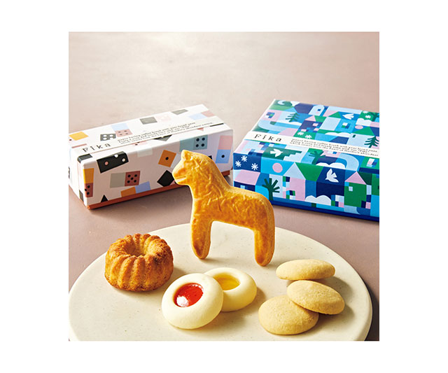 馬の形の「ダーラヘストクッキー」など、北欧伝統の人気スイーツを詰め合わせました。冬をイメージした限定パッケージでお届けします。