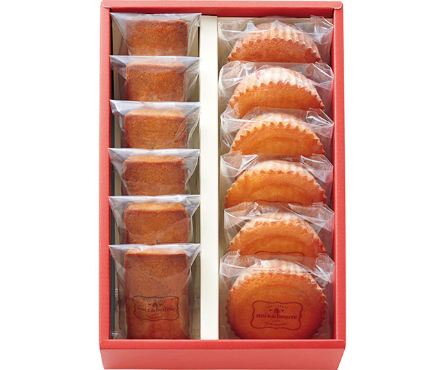 「お菓子の一番美味しい瞬間を届けたい」がモットーの〈ノワ・ドゥ・ブール〉。焦がしバターが香るフィナンシェとマドレーヌを詰め合わせた「ガトー・アソルティ」。丁寧に焼きあげた多彩なお菓子をお届けします。
