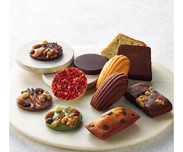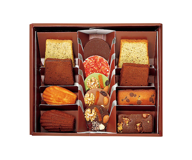 - パレショコラ5種×各1、フィナンシェ・ブラウニー×各1、マドレーヌ×2、ケーク×4
