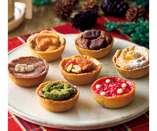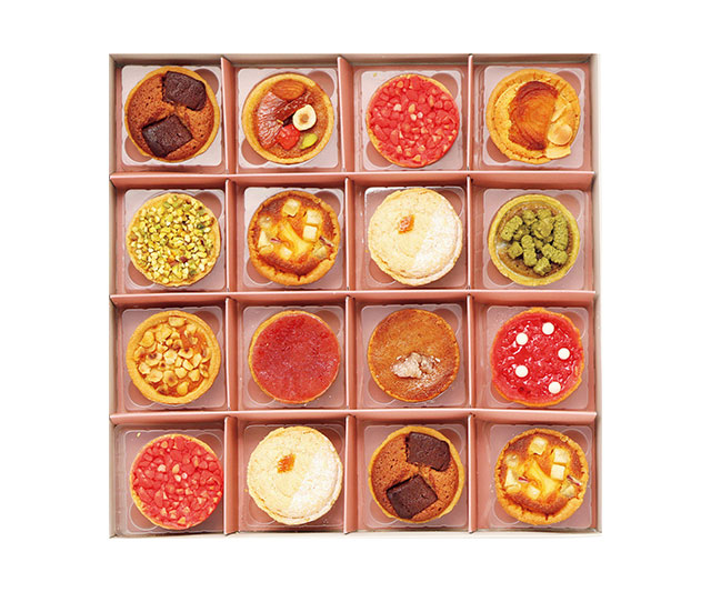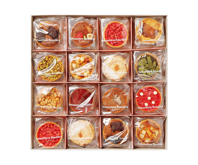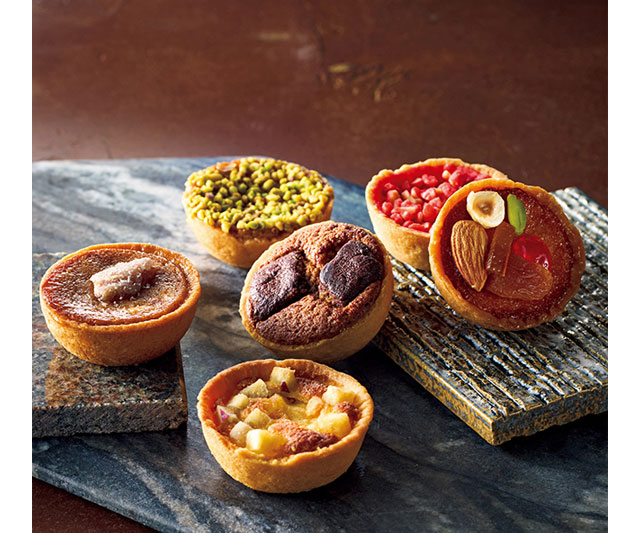 フランスに本店を構える〈セバスチャン・ブイエ〉がお届けする、多彩なタルトレット。タルト生地にマドレーヌやフィナンシェなどを入れ、ドライフルーツやナッツを重ねました。