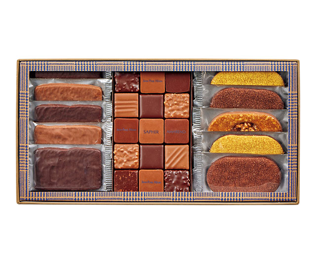 - サブレ(ヴィエノワ・ヴィエノワ ショコラ×各2、ミエル アマンド×1)、クラッカン(ノワール×3、レ×2)、ボンボン ショコラ×15