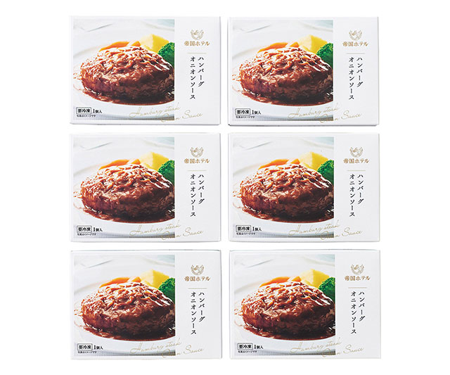 ビーフの旨みを閉じ込めたジューシーなハンバーグ。〈帝国ホテル〉伝統のデミグラスソースをベースにしたオニオンソースで、いっそう味わいを深めました。
