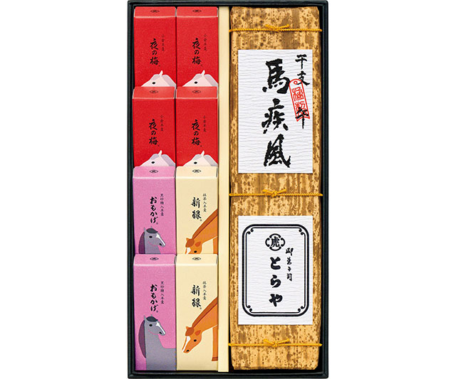 - 干支羊羹 馬疾風(竹皮包)660g(330g×2)×1、干支パッケージ小形羊羹(夜の梅×4、おもかげ・新緑×各2)各50g