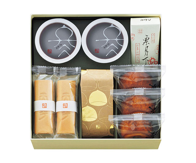 ふくみ天平×4、栗の子2個入×1、福寿芋×3、栗月下×1、本生羊羹 冬味×2
