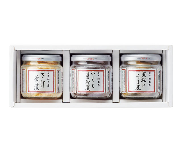 さけ茶漬130g、いくら醤油漬160g、貝柱のうま煮100g